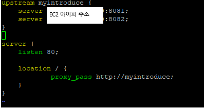 로드밸런싱을 위해서 본인의 경우 백엔드 애플리케이션을 하나의 EC2의 8081, 8082 포트에 실행시켰습니다.