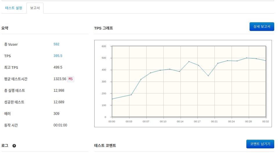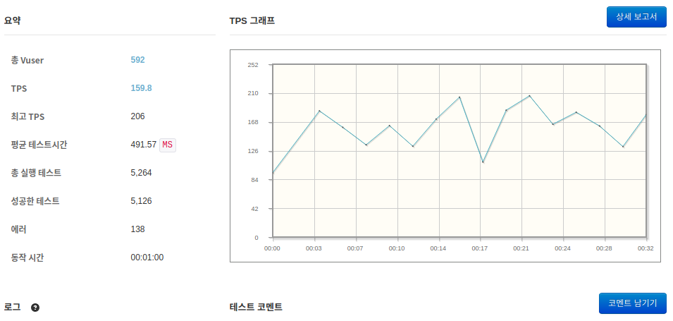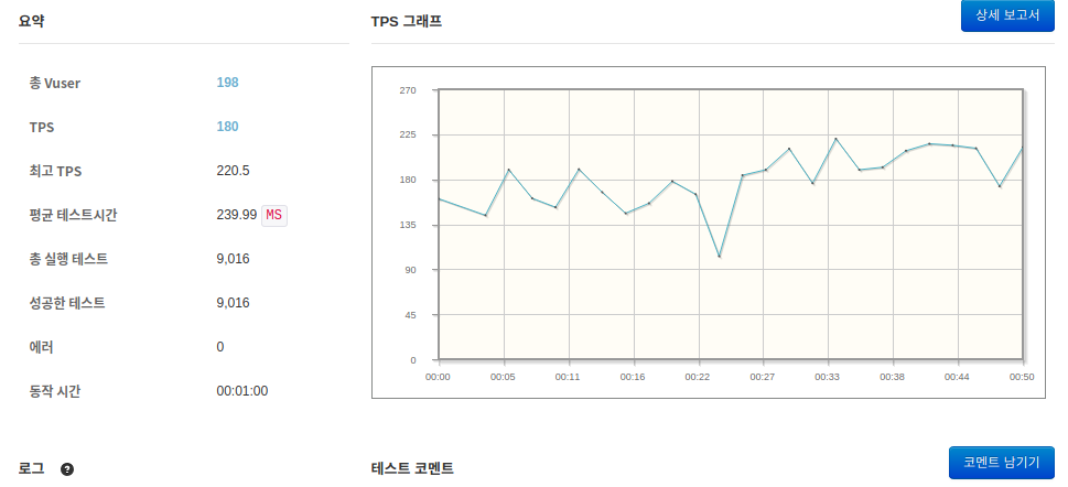 물론 1분 동안의 테스트이기때문에 보다더 긴 시간의 테스트를 진행하는 등 추가적인 설정 등이 필요하지만 일단 부하를 발생시켜볼수 있었습니다.