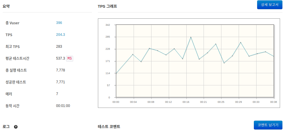 쉽게 생각하면 tps는 높을수록 테스트시간과 에러는 적을수록 좋습니다.