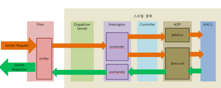 위의 설명에는 filter, interceptor, aop에 대한 내용이 없습니다.