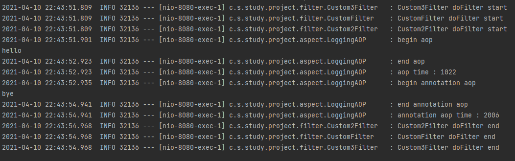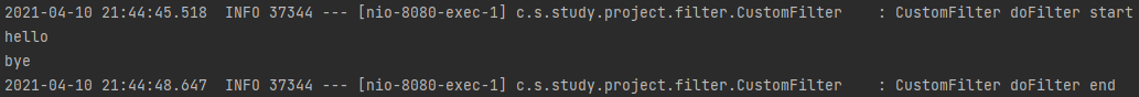 요청했을때 필터 log를 확인할 수 있습니다.