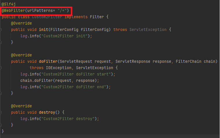 @WebFilter(urlPatterns= {"/target", "/target2"}) //여러개 등록시