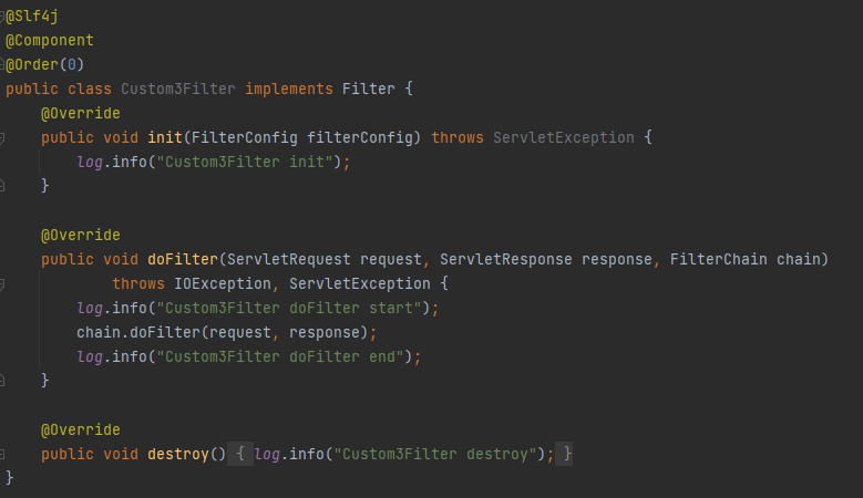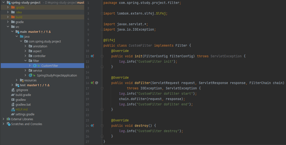 우선 Filter인터페이스를 상속 받아서 구현