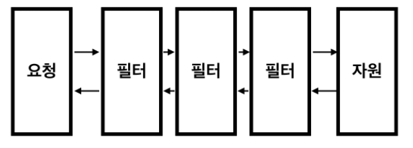 필터는 여러개 를 등록하고 요청이 해당 필터를 순서대로 통과하도록 할수 있습니다. 이런 필터들을 필터 체인이라고 부르죠.