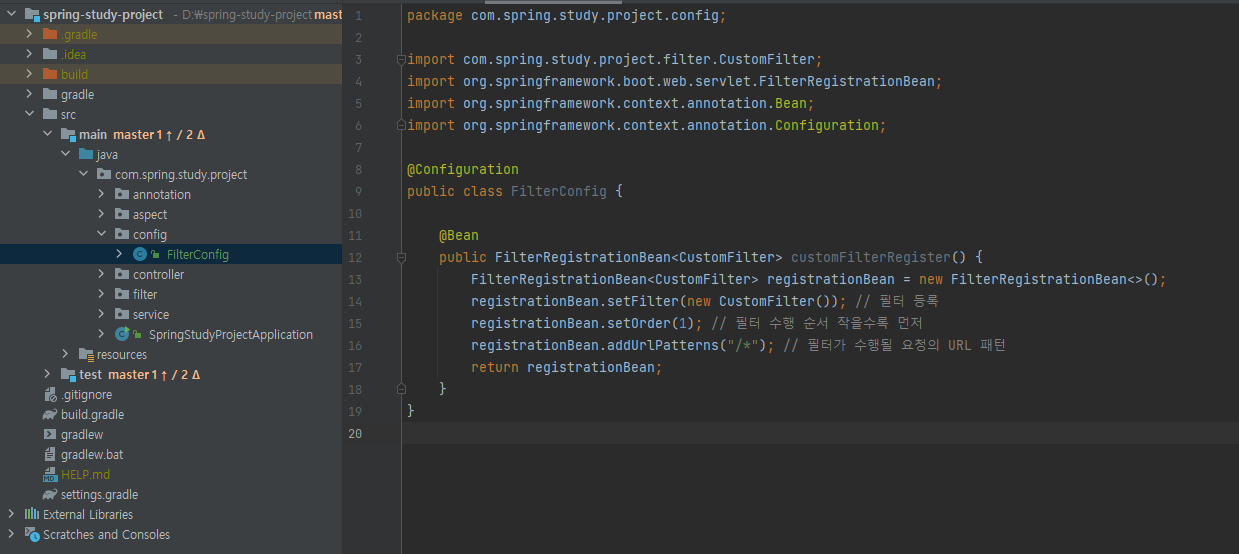 1. FilterRegistrationBean으로 필터 등록