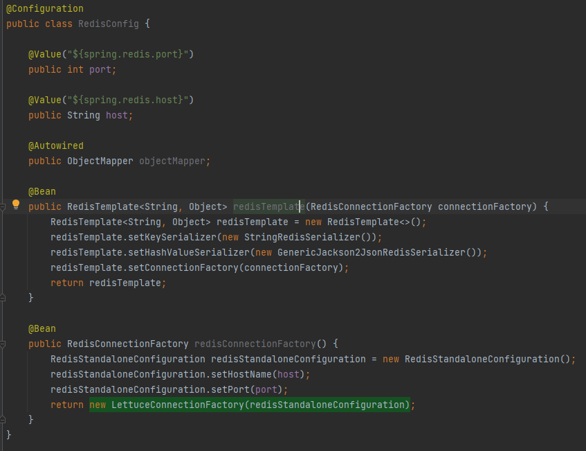 redisConnectionFactory는 redis와 connection을 생성해주는 객체입니다.