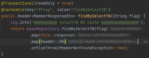 매번 메인페이지를 새로고침할때마다 동일한 member의 값을 조회하게 되기 때문에 이 값을 redis를 이용해서 캐싱하여서 캐쉬가 있으면 캐쉬를 없으면 db에서 조회하도록 해보겠습니다.