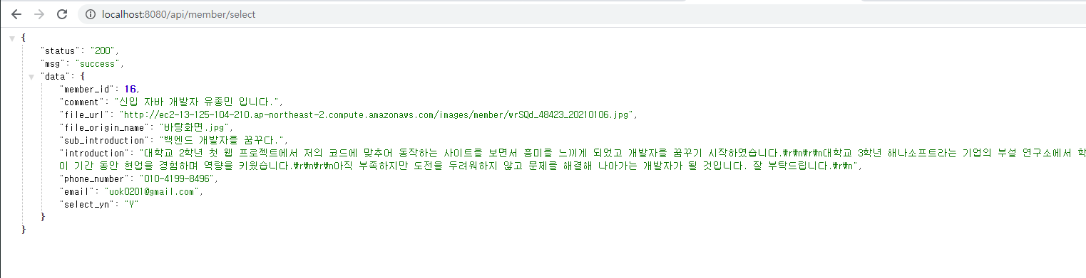 자기소개 프로젝트를 보면 실질적으로 프론트엔드에서 값을 넘겨 받는 데이터는 대표로 선택된 값 만이기 때문에