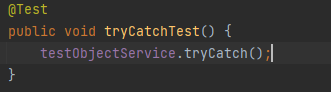 TestException thrown = assertThrows(TestException.class, () -> testObjectService.tryCatch());