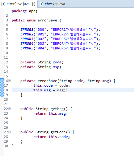 enum클래스를 이용하면 해당 클래스로 에러코드를 전부 관리 할수 있게 된다.