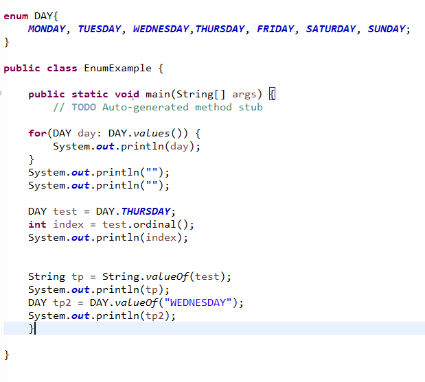 static과 fianl이 내장되어 있어서 한번 정의 된 값을 바꿀수없으며 int 형의 변수처럼 switch문에서 사용가능