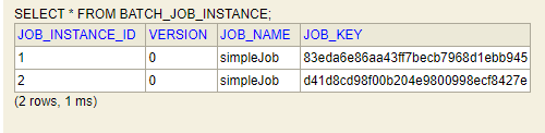 Job Parameter에 따라 생성되는 테이블로 실행했던 simpleJob을 확인 가능