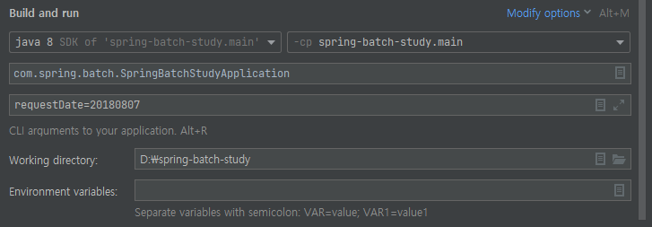 Caused by: org.springframework.batch.core.repository.JobInstanceAlreadyCompleteException: A job instance already exists and is complete for parameters={requestDate=20180805}. If you want to run this job again, change the parameters.
