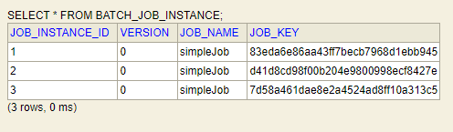 JOB_EXECUTION 테이블을 보시면 3개의 ROW가 있는데요.