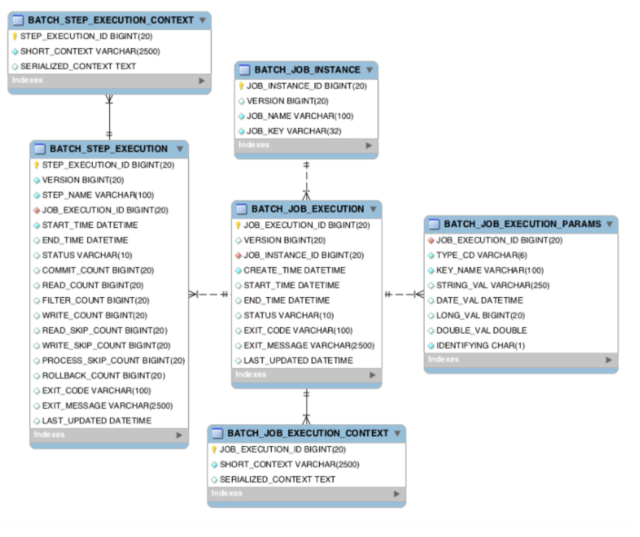 JOB_EXECUTION와 JOB_INSTANCE는 부모-자식 관계