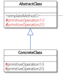 하위 클래스에 공통 알고리즘을 정의하고 하위 클래스에서 구현될 기능을 primitive 메서드 또는 hook 메서드로 정의하는 클래스 - ConcreteClass