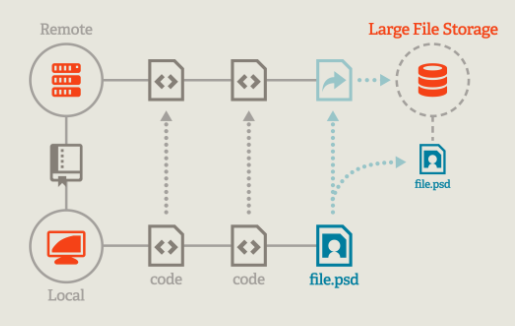 - 파일 내용을 원격 서버에 저장하는 동안 큰 파일을 Git 내부의 텍스트 포인터로 대체