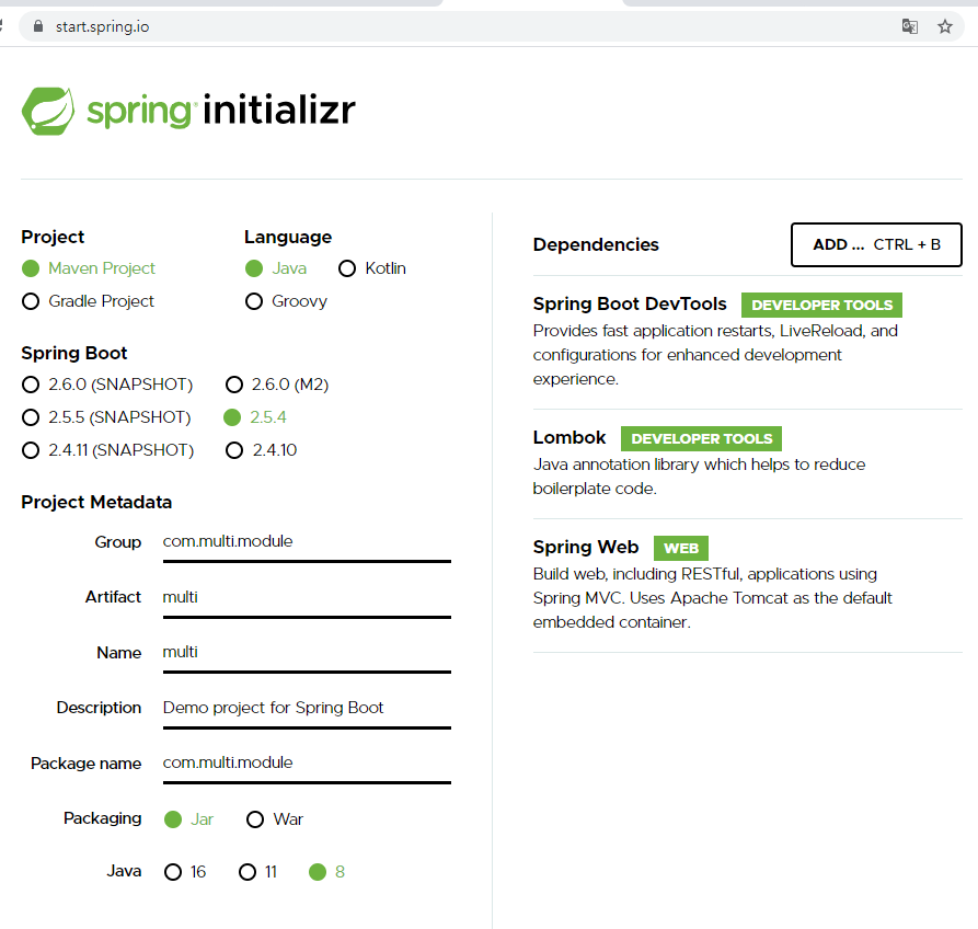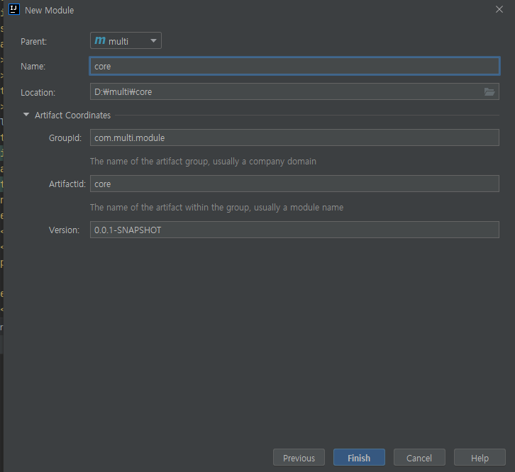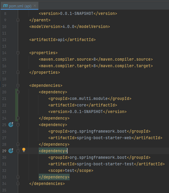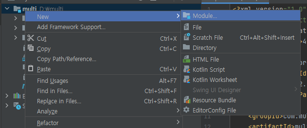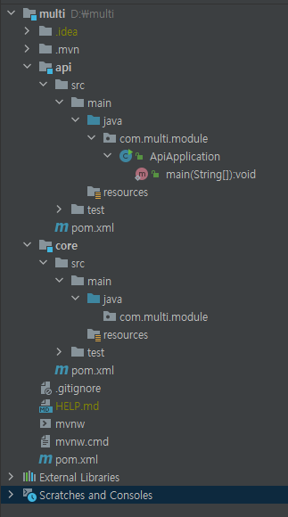만들고 나면 multi의 pom.xml이 아래와 같을 텐대