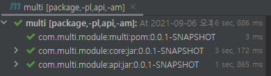 api 모듈 하위 target에 아래처럼 jar 파일이 만들어지는데 해당 jar를 실행하여 확인하면 멀티 모듈 기본적인 셋팅이 되었습니다.