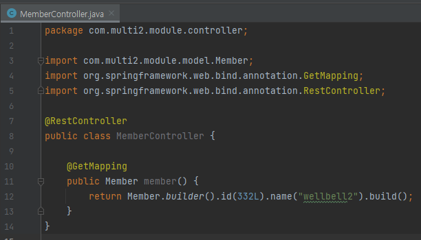 Member는 메이븐에서 사용한 것과 동일한 것을 core모듈에 생성후 아래 처럼 controller를 작성하여 실행하면 정상 작동합니다.