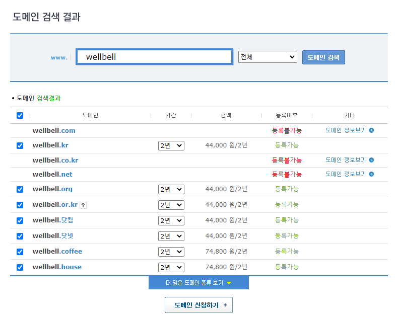 아래 카페24 도메인센터에서 원하는 도메인을 검색합니다.