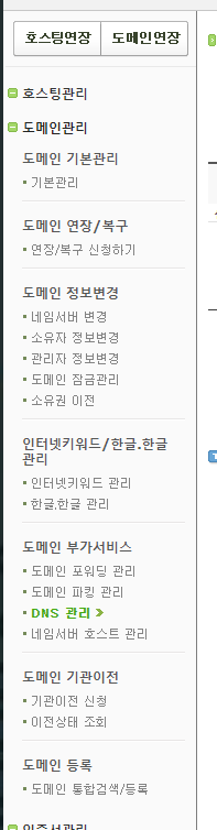 3. 도메인 관리 -> DNS관리로 이동합니다.