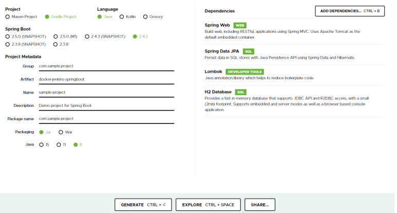 젠킨스를 통해서 배포할 샘플 프로젝트를 만들어 보자.