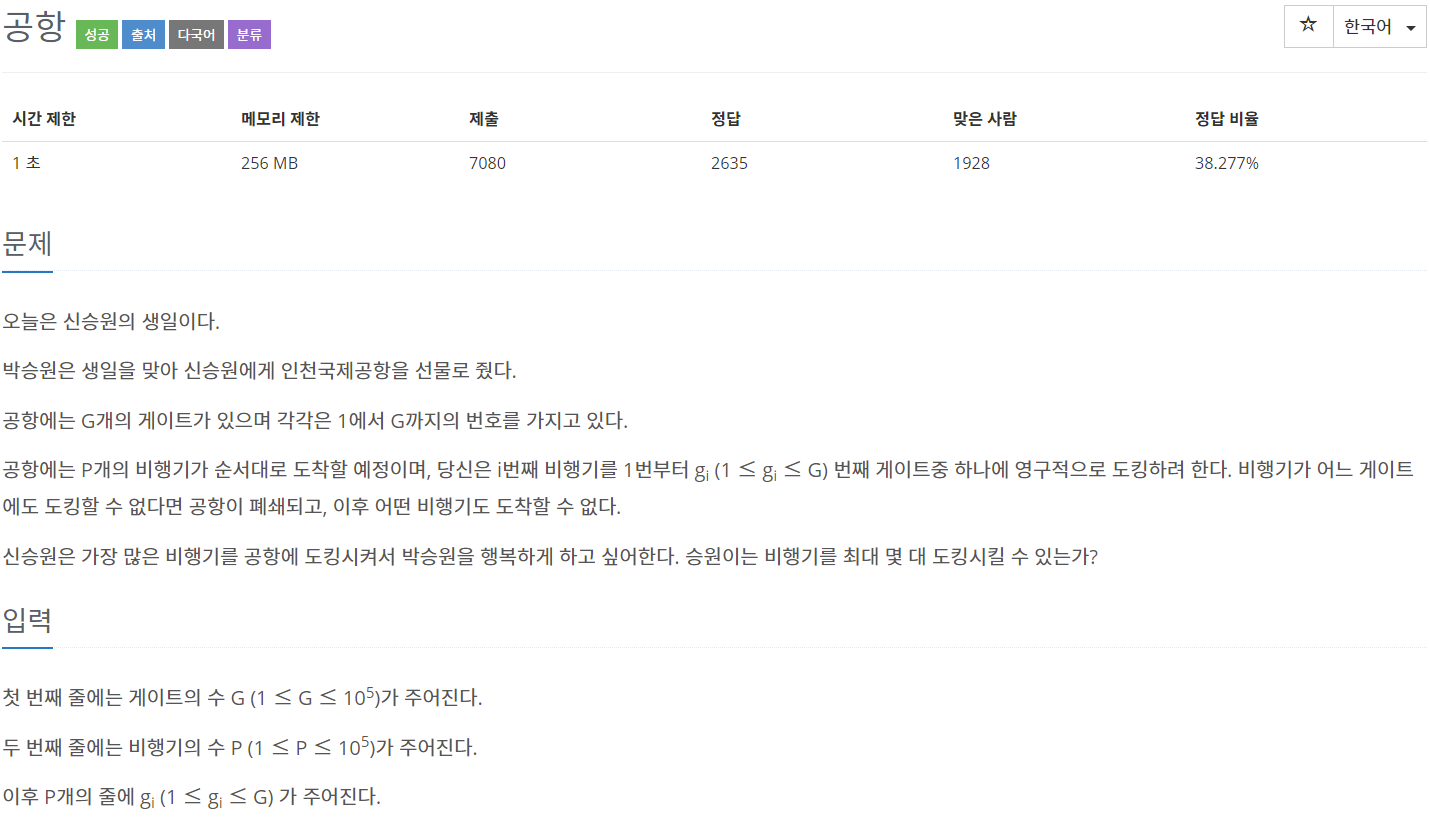 // 공항 문제 - 10775번