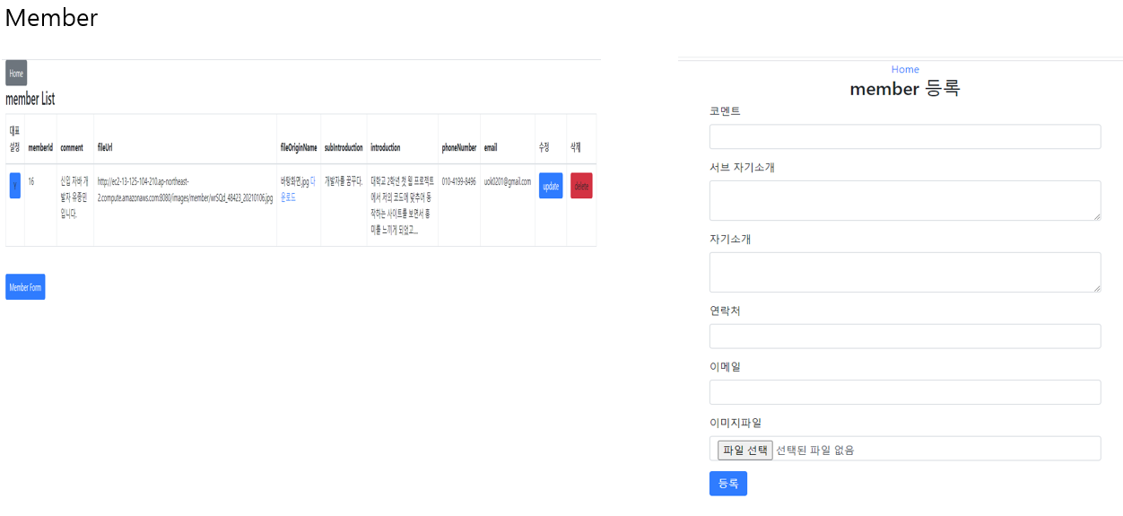 자기소개 페이지를 관리할 관리자 페이지와 대민페이지를 springboot, react로 만들고