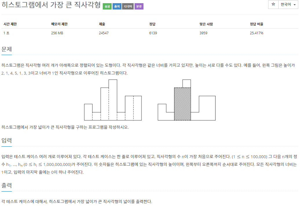 // 히스토그램에서 가장 큰 직사각형 문제 - 6549번