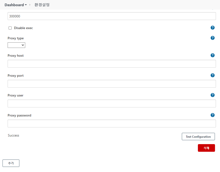 전부 입력하신뒤 하단에 Test Configuartion를 눌러서 Success가 뜨면 연결은 끝입니다. 저장을 눌러주세요.