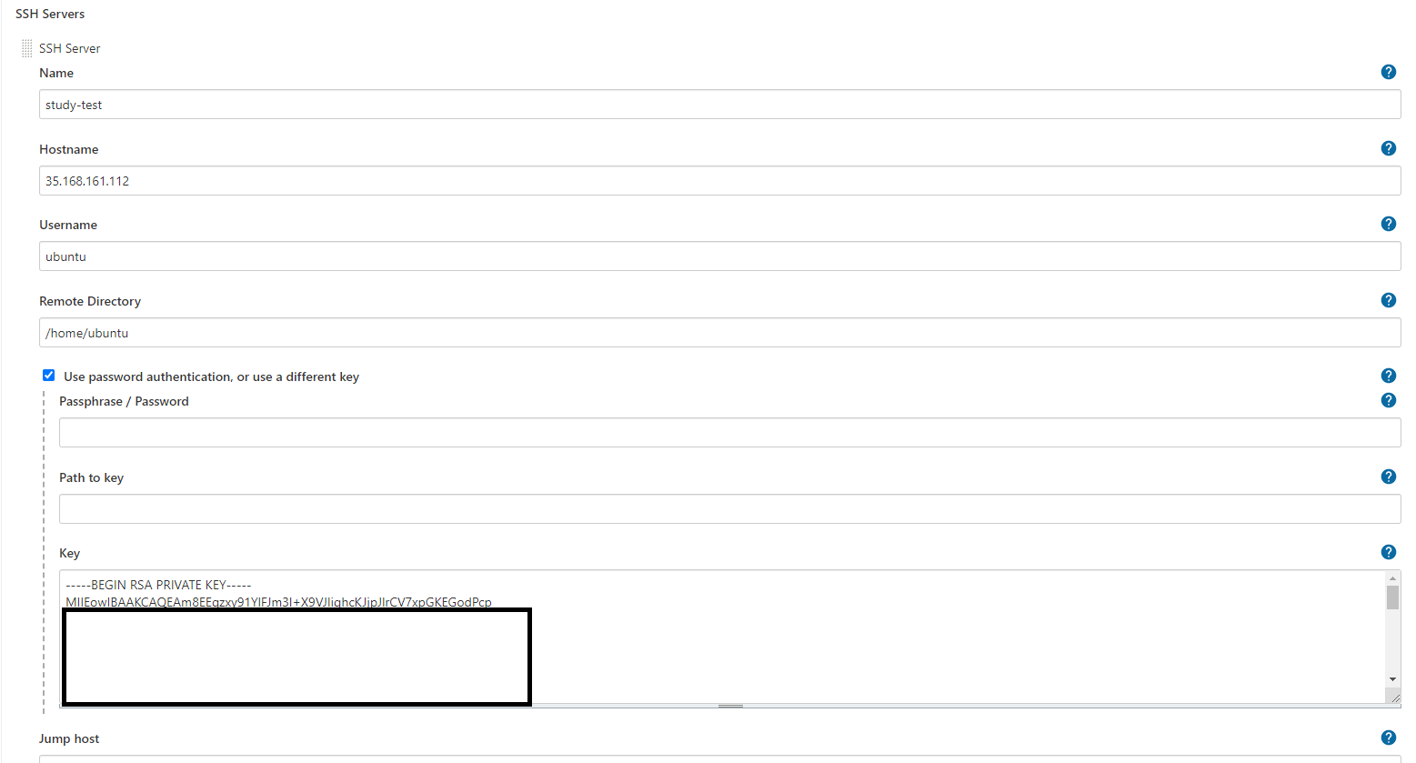 - SSH 연결할 AWS EC2 정보를 입력해줍니다.
